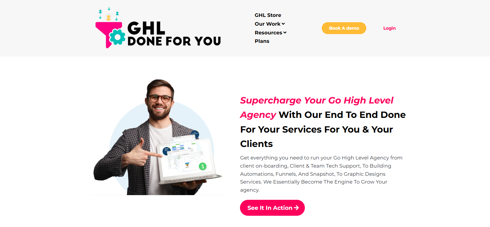 This agency oversees the complete setup of the GHL process with little involvement from the clients. Customization depth might be shallow, although this is convenient.