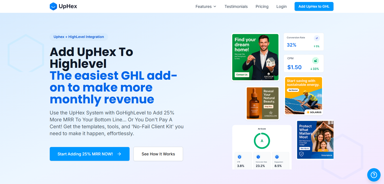 UpHex focuses on the combination of paid advertising data into the GoHighLevel CRM pipelines to enhance attitudinal data and automated follow-ups.